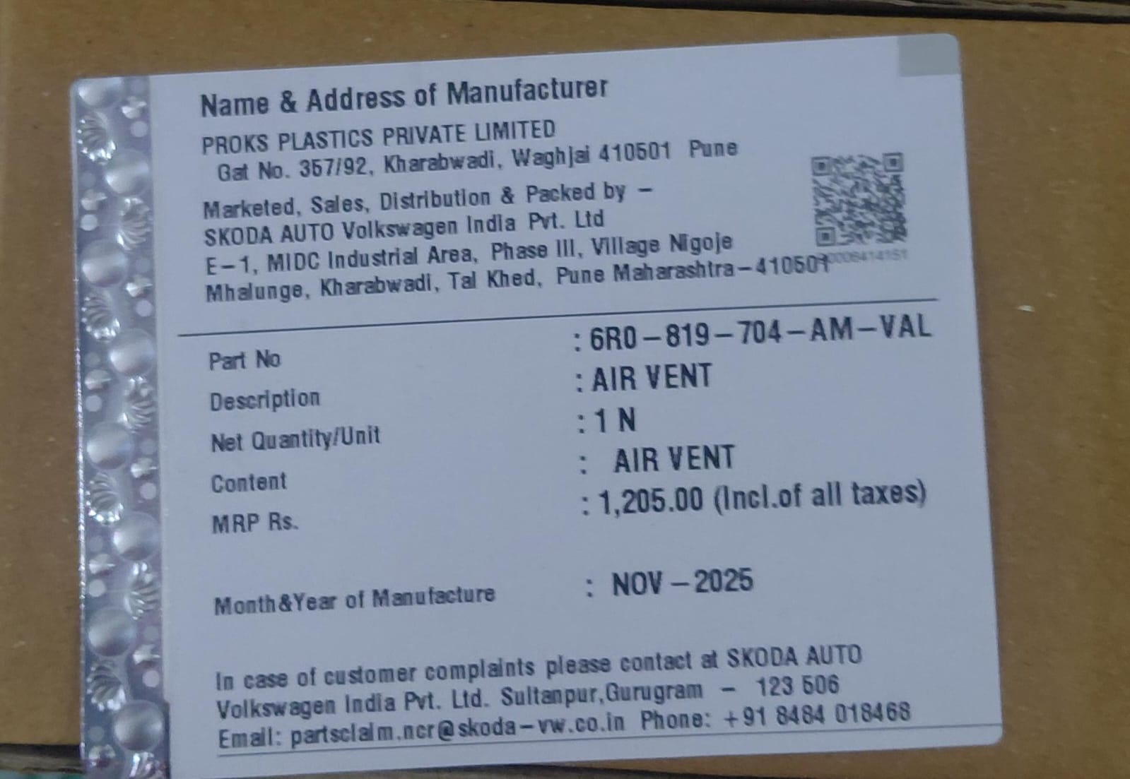 VW Ameo (2016-20), Polo (2009-19), Vento (2014-19) - Air Vent Chrome Front Right Side 6R0819704AMVAL - Volkswagen Genuine